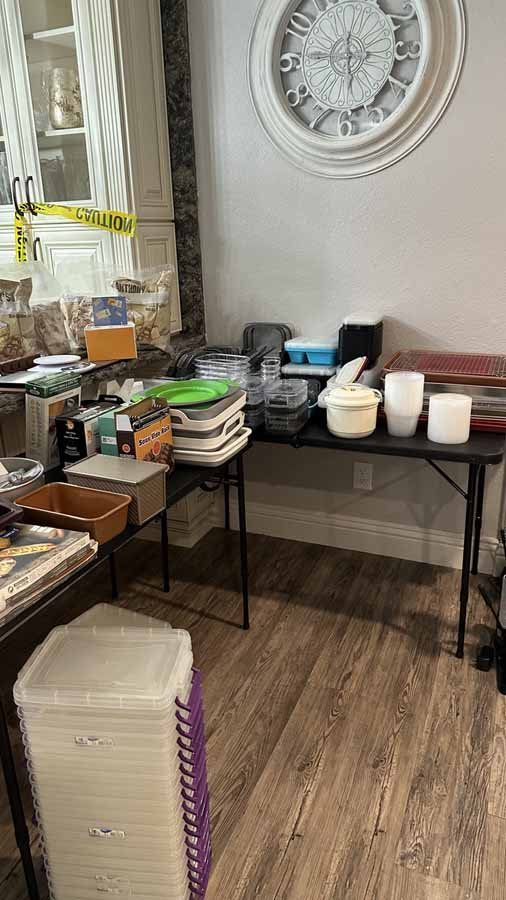 You won't want to miss this one! Great house with so much good stuff, we have to break it up into a few weeks. Gourmet kitchen with everything new and unused. Leather sectional, dining room set, bedroom set with an unused SLEEP NUMBER bed with all the bells and whistles! Bicycle tables, chef collection, lady figural fountain and garden sculpture, folding massage table, leather loveseat, lockable floral chests of drawers, quality bed & bath linens, SHOES! SHOES! SHOES!, quality men's and ladies clothing, traditional leather desk & client chair, artwork, sewing machines, COMMERCIAL COOKWARE (HOT DOG GRILL, DOUBLE DEEP FRYER, MEAT GRINDERS) PERFECT FOR SOMEONE WITH A FOOD TRUCK OR COMMERCIAL KITCHEN, ALL BRAND NEW and so much more!